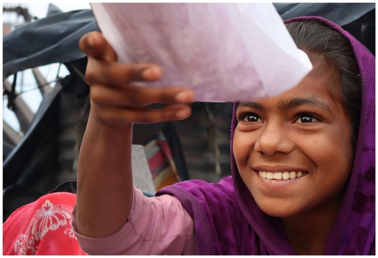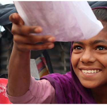 The charity gives packs of 5 high-quality reusable sanitary napkins to girls living in slums in Delhi and rural areas of India.