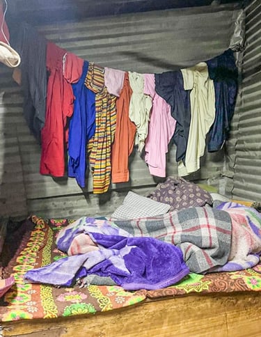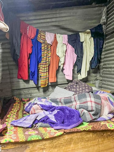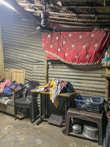 “After the distribution of Hanaru napkins, they invited us to their homes to have chai and talk with them. They were proud that they had their sweet homes. The home in the photos was much larger than some I went in and the family was happy for me to take photos.