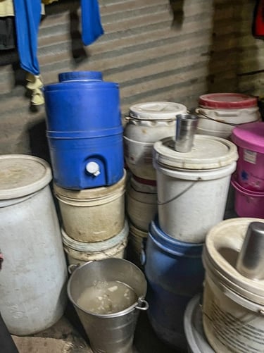 Slums can be unbelievably crowded, with families of up to 8 living in one room. They often have no roads, water supply, toilets, sewers, or electricity. Clean water is brought into some slums by truck daily, and families can collect it in containers.