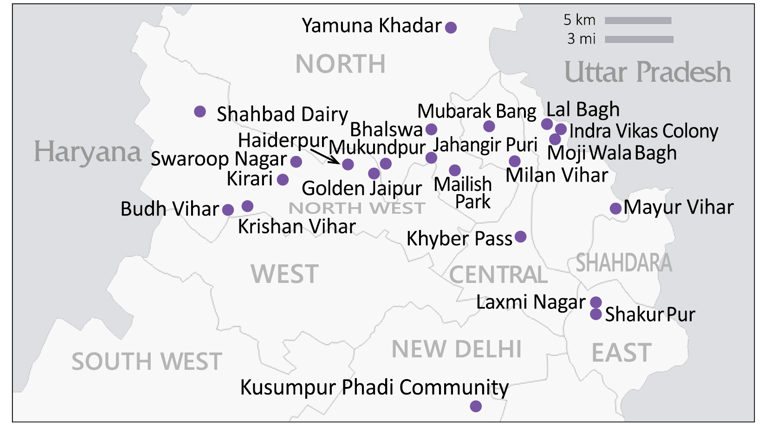 The map below shows all the slums in Delhi where the Ambassadors have distributed the packs.